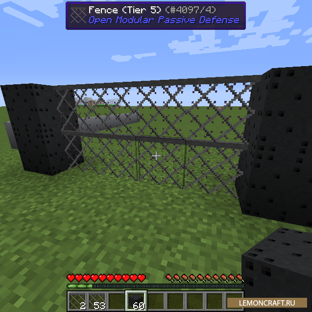 Мод Open Modular Passive Defense предназначен для установки защитных блоков возле вашей территории. С установкой мода у вас появится специальный забор из сетки, коснувшись которого моб получит урон. Кроме этого будут добавлены блоки, которые будут иметь различную твердость. Соответственно, что бы их сломать уйдет значительно больше времени. Забор из сетки не нанесет вам урон, так что можете свободно его касаться.